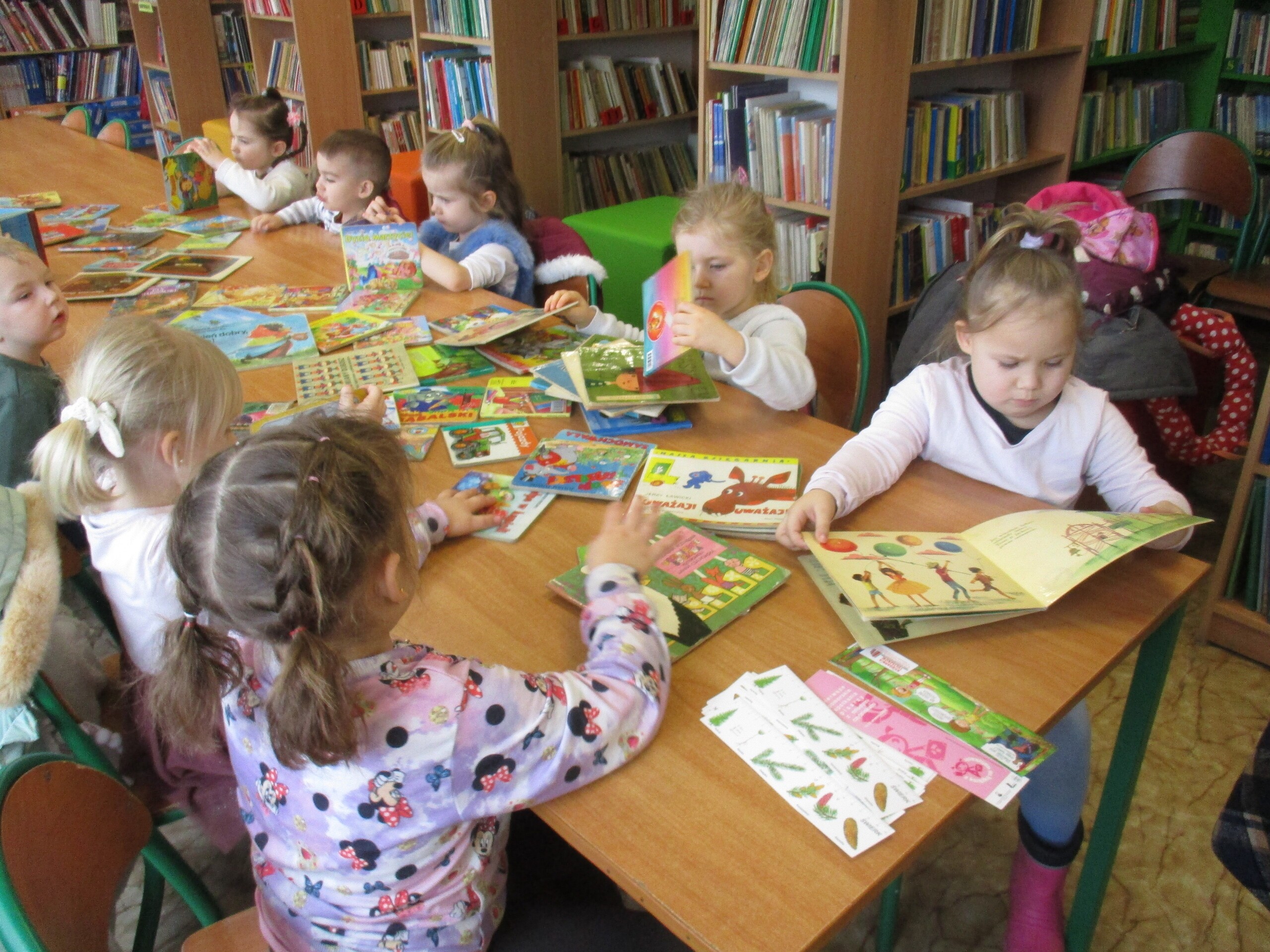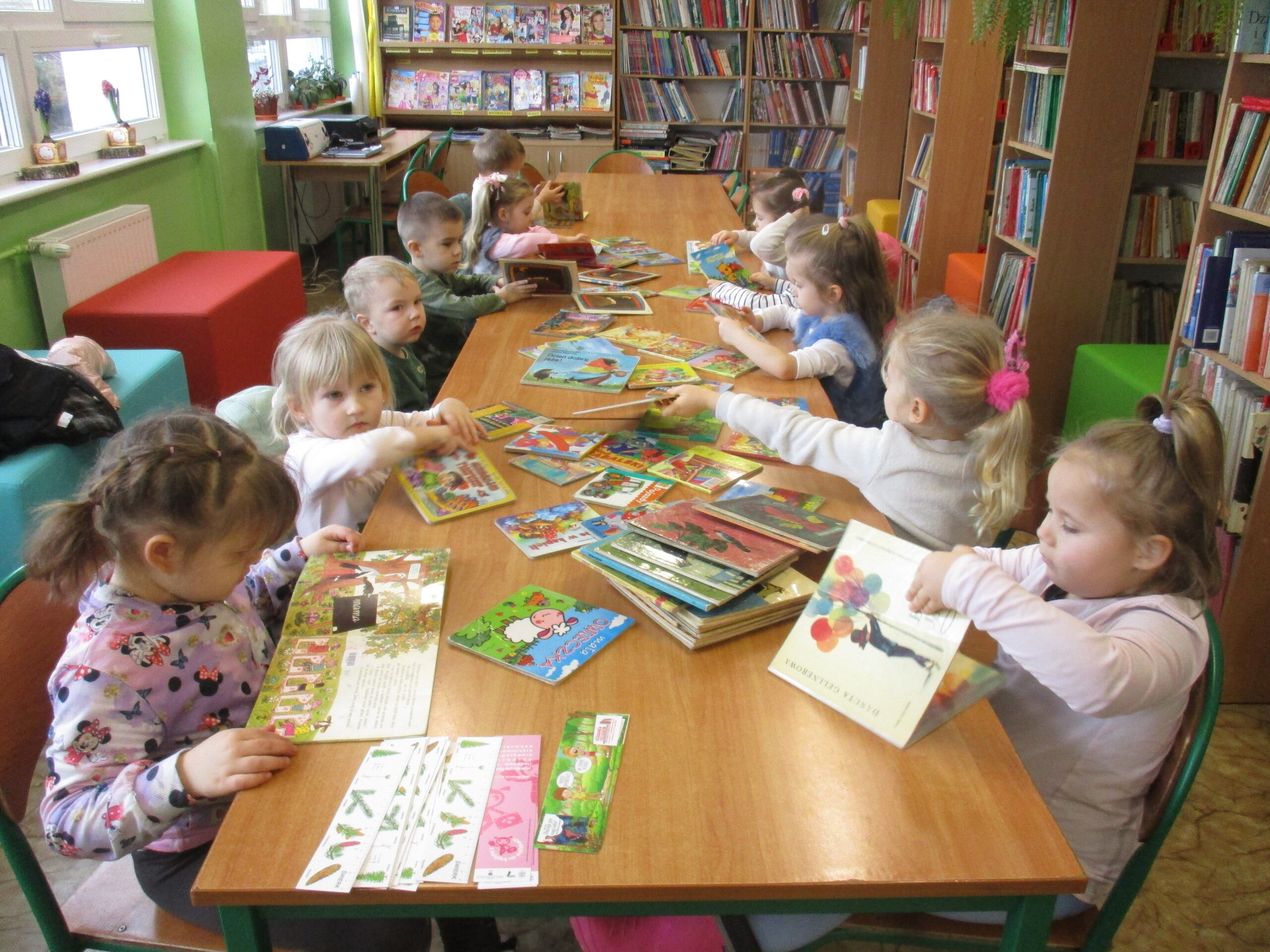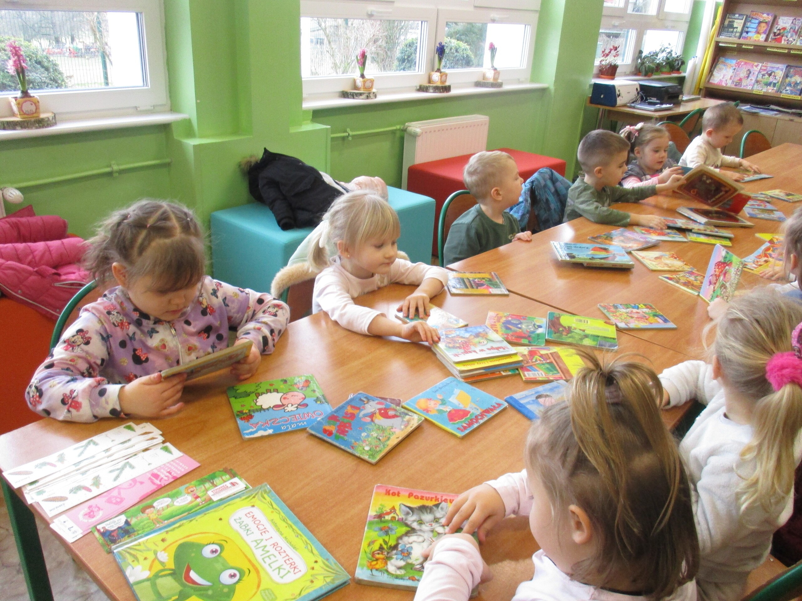 Dzisiaj dzieci z Przedszkola odwiedziły bibliotekę szkolną przy Szkole Podstawowej w Garczegorzu. Przedszkolaki dowiedziały się od Pani Bożeny, co należy zrobić, aby stać się czytelnikiem biblioteki oraz jak należy się w niej zachować, a także poznały zasady wypożyczania książek. Pani bibliotekarka pokazała dzieciom, gdzie znajduje się przeznaczony specjalnie dla nich regał z książkami. Następnie zaprezentowała i dała do obejrzenia dzieciom najmniejsze książeczki z działu dziecięcego oraz gazetki dla najmłodszych. Przedszkolakom bardzo spodobały się kolorowe i bogato ilustrowane książeczki, które z chęcią oglądały. Starsze dzieci miały możliwość wypożyczenia książek. Spotkanie odbywało się w miłej, pełnej uśmiechów i wrażeń atmosferze. Pani Bożena każdemu przedszkolakowi wręczyła zakładkę do książki.