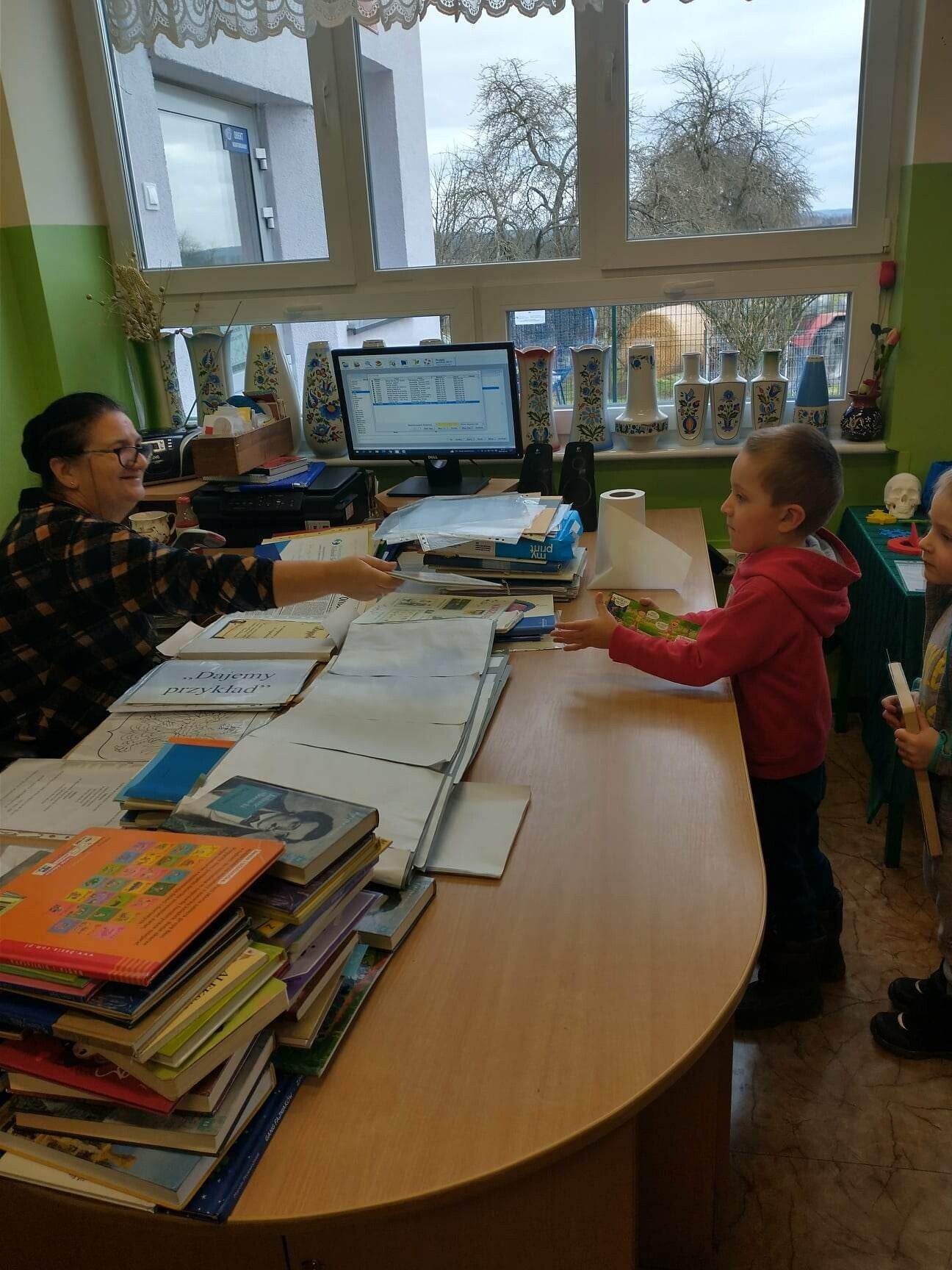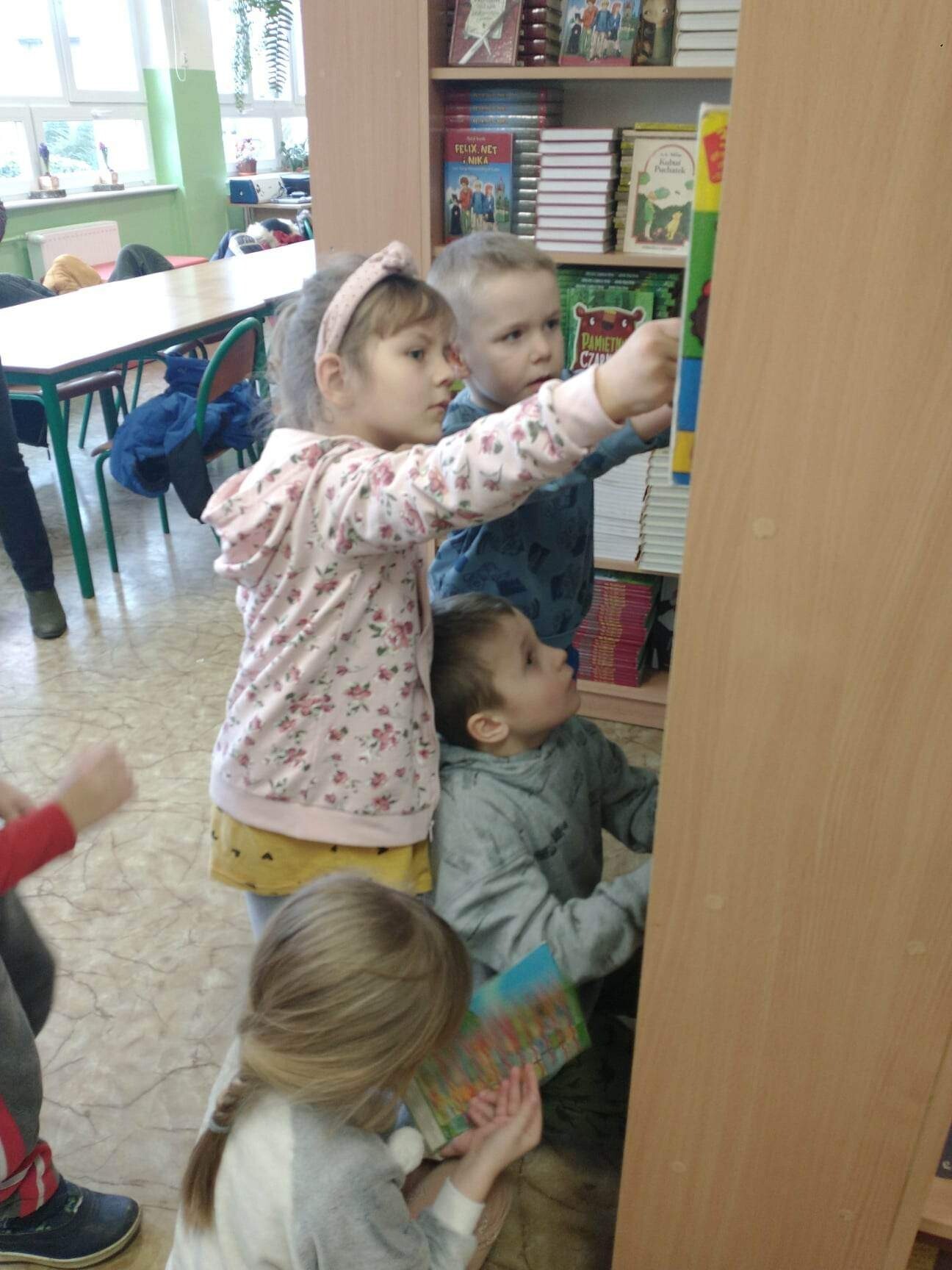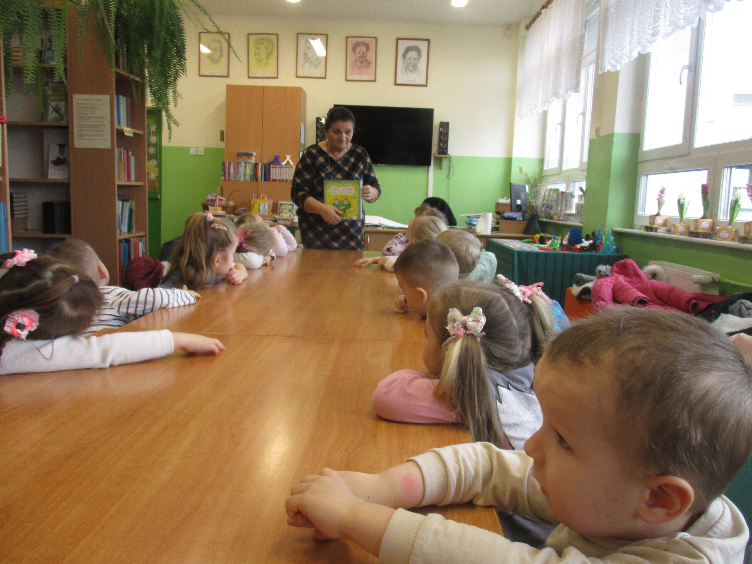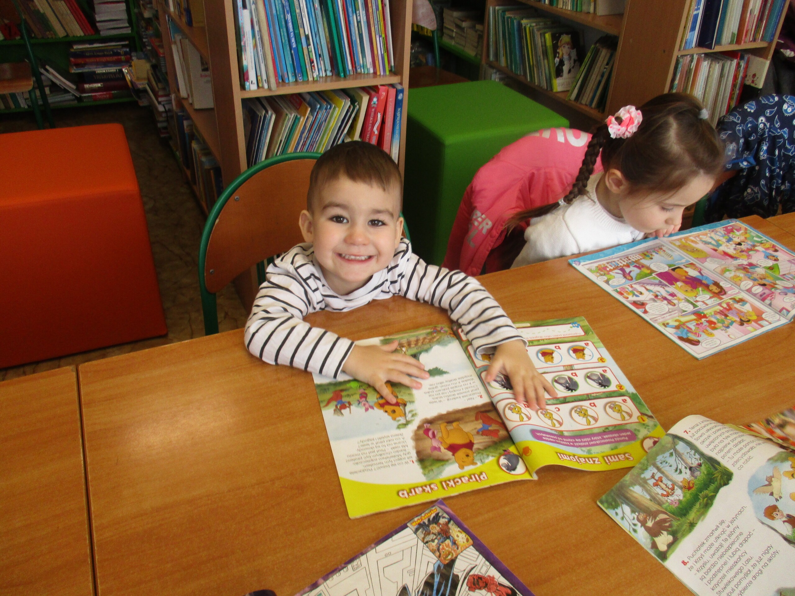 Dzisiaj dzieci z Przedszkola odwiedziły bibliotekę szkolną przy Szkole Podstawowej w Garczegorzu. Przedszkolaki dowiedziały się od Pani Bożeny, co należy zrobić, aby stać się czytelnikiem biblioteki oraz jak należy się w niej zachować, a także poznały zasady wypożyczania książek. Pani bibliotekarka pokazała dzieciom, gdzie znajduje się przeznaczony specjalnie dla nich regał z książkami. Następnie zaprezentowała i dała do obejrzenia dzieciom najmniejsze książeczki z działu dziecięcego oraz gazetki dla najmłodszych. Przedszkolakom bardzo spodobały się kolorowe i bogato ilustrowane książeczki, które z chęcią oglądały. Starsze dzieci miały możliwość wypożyczenia książek. Spotkanie odbywało się w miłej, pełnej uśmiechów i wrażeń atmosferze. Pani Bożena każdemu przedszkolakowi wręczyła zakładkę do książki.
