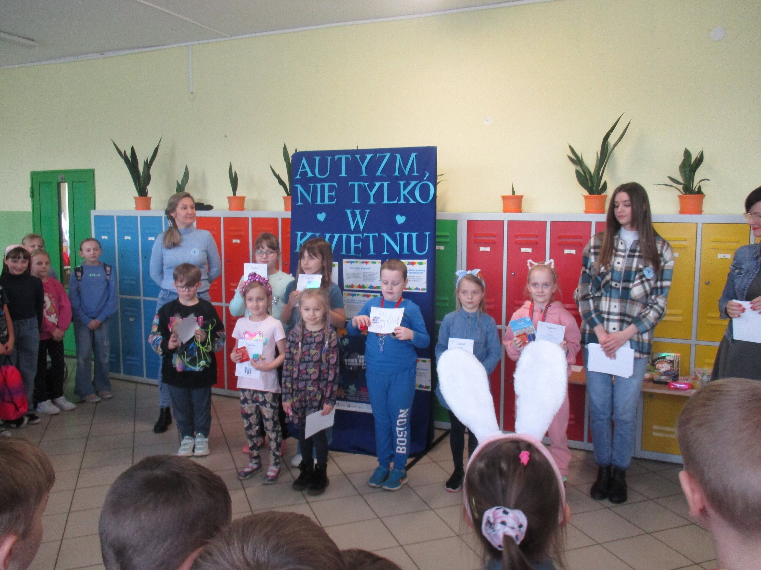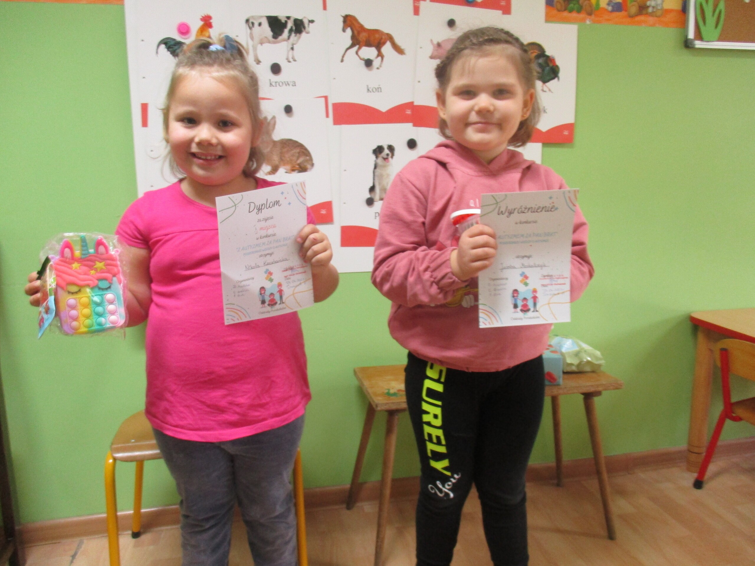 Dzisiaj w Szkole Podstawowej w Garczegorzu odbyło się wręczenie dyplomów i nagród dzieciom, które wzięły udział w szkonym plastycznym konkursie pod hasłem: "Z autyzmem za pan brat". Maria Ramczykowska ze Starszaków zdobyła 1 miejsce. Jej praca konkursowa weźmie udział wraz z 9 pracami innych laureatów ze szkoły w następnym etapie, czyli w powiatowym konkursie. Reszta przedszkolaków biorących udział w konkyrsie otzrymała wyróżnienia. Dyplomy i nagrody wszystkim dzieciom wręczała Pani Dyrektor.