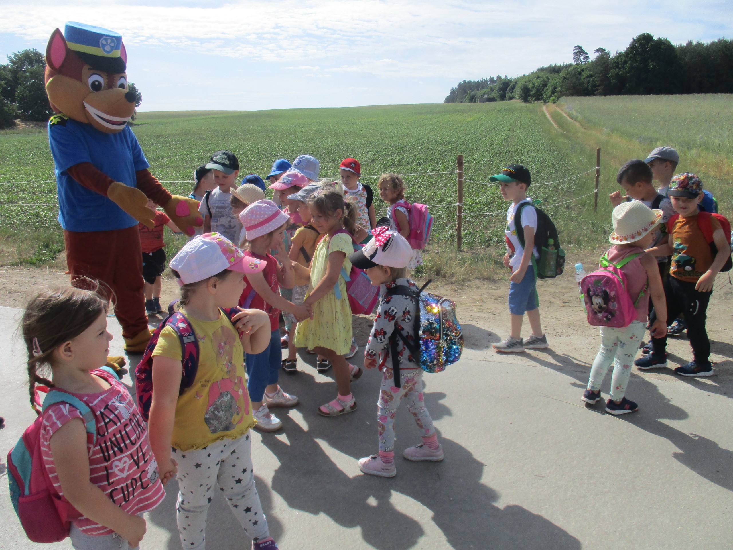 Dzisiaj nasze przedszkolaki pojechały na wycieczkę do Grąbkowa. Dzieci , po przejściu przez bramę dołączyły do Psiego Patrolu i ruszyły na misję ratowania świata. Dzielne psiaki pokazały, jak zostać członkiem Psiego Patrolu. Psiaki zabrały dzieci w podróż dookoła świata, by zdobyć wiedzę o kontynentach i ich mieszkańcach. Rocky pokazał jak z ekologicznych materiałów zrobić odznaki Psiego Patrolu. Chase nauczył bezpiecznych zachowań na drodze. Dzieci zamieniły się w samochodziki – jeździły wyścigówkami zgodnie z zasadami. Niczym Zuma przedszkolaki dotarły do Groty Krakena i poszukały w niej skarbów. Sky zabrała dzieci do Strefy Urwisa – przedszkolaki figlowały i szalały na dmuchanych zjeżdżalniach. Marshall sprawdził sprawność na linowych mostach i torze sprawnościowym. Dzieci wykonały wszystkie misje i zdobyły certyfikat Psiego Patrolu, a co za tym idzie, zostały jego członkami. Nowi członkowie Psiego Patrolu otrzymały specjalną legitymację oraz balonowego psiaka! Na dzielne dzieci czekał też posiłek, który pomógł zregenerować nadwyrężone wyprawą siły.