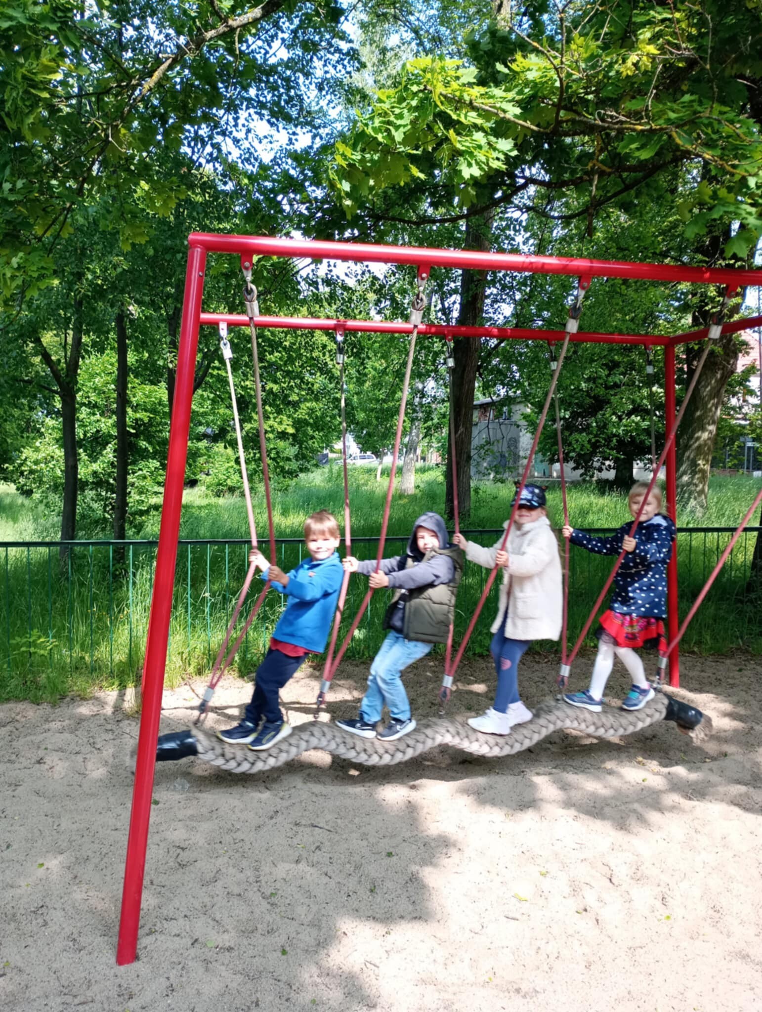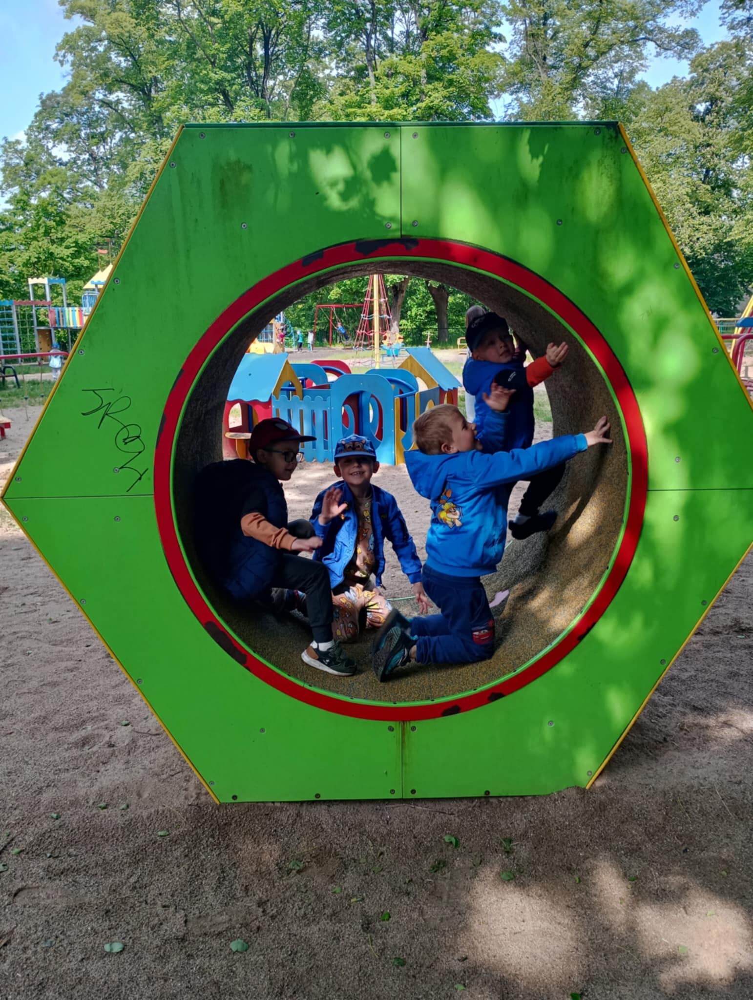 Z okazji Dnia Dziecka przedszkolaki udały się na wycieczkę do Lęborka. Dzieci zwiedziły Park Chrobrego, pobawiły na wielkim placu zabaw, przespacerowały uliczkami Lęborka przy okazji poznając zabytki miasta. Na koniec wyjazdu przedszkolaki przy dżwięku fontanny zjadły lody. Tak, jak powiedziały dzieci: lody najpyszniejsze na świecie. Po powrocie do przedszkola czekała na dzieci niespodzianka w postaci zabawki do zabawy wodą. Wycieczka bardzo spodobała się. Dzieci wróciły zadowolone i zmęczone.