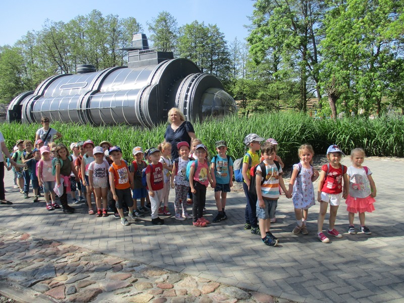 3 czerwca przedszkolaki pojechały na całodzienną wycieczkę do Parku Ewolucji w Sławutówku. Dzieci miały możliwość zabawy interaktywnej z dinozaurem w kinie prehistorycznym 3D. Doznały w batyskafie niezapomnianej przygody na dnie prehistoryczego oceanu. Przedszkolaki miały możliwość obejrzenia makiet wielkich dinozaurów oraz scenek z życia ludzi pierwotnych. Wszystkie dzieci udały się w krótką podróż Dino pociągiem, a także uczestniczyły w warsztatach, na których malowały gipsowe figurki dinozaurów. Po świetnej zabawie przedszkolaki udały się na plac zabaw, na którym spędziły aktywnie czas.