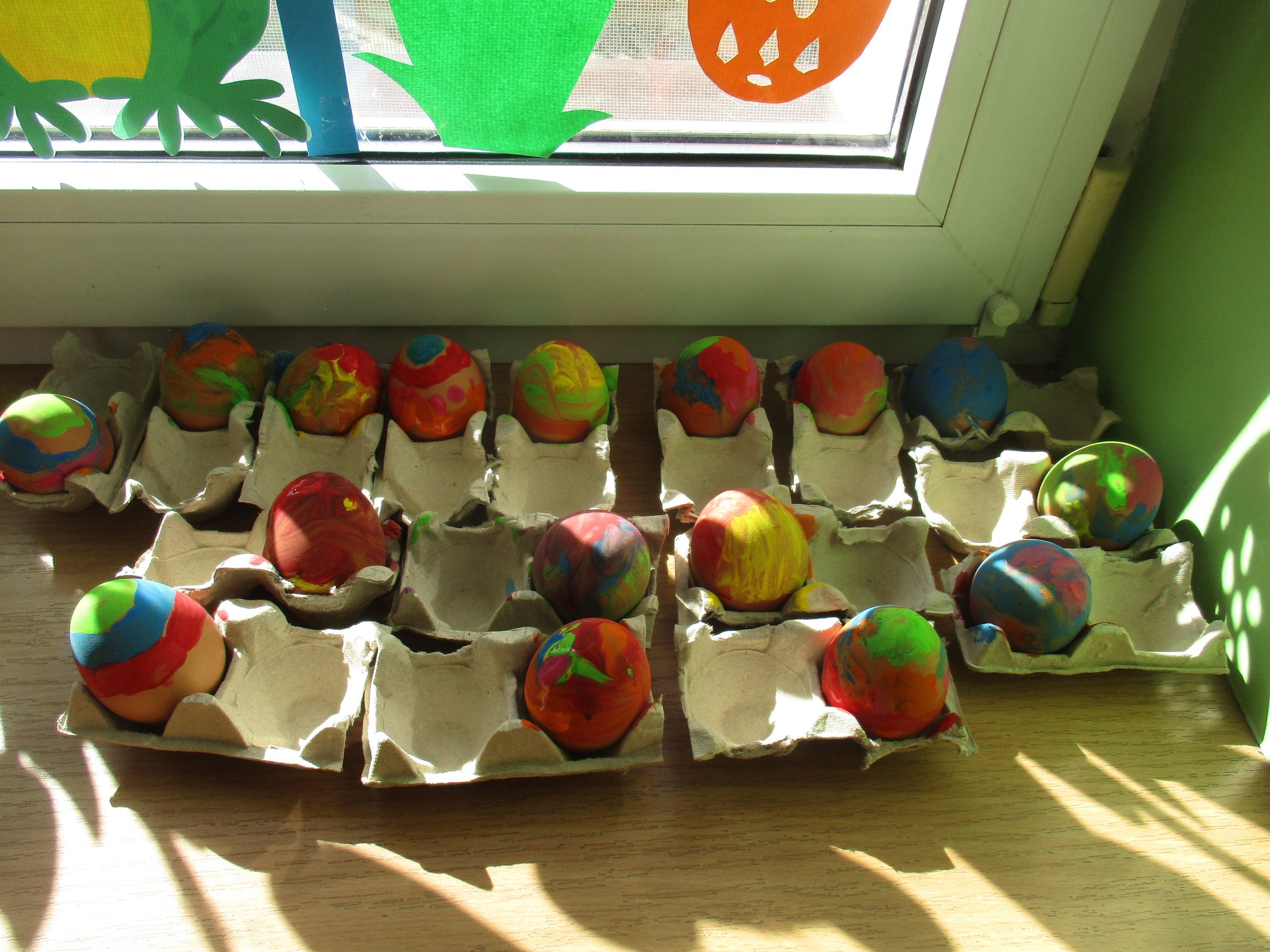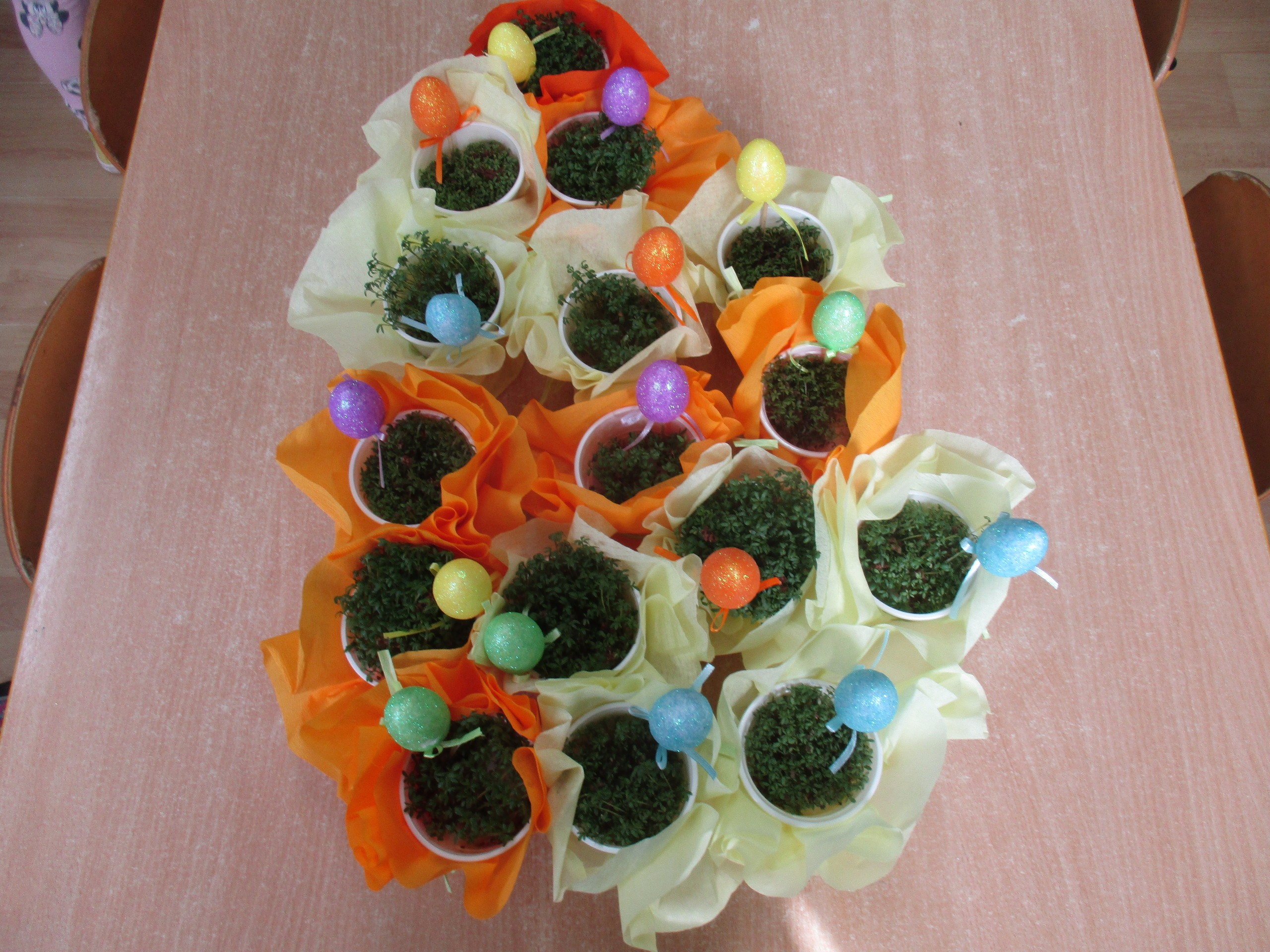 Maluchy dla zająca zaśpiewały piosenkę o pisankach (poniżej link do piosenki). Wszystkie przedszkolaki do domu zaniosły stroiki świąteczne oraz pisanki wykonane na zajęciach w przedszkolu.