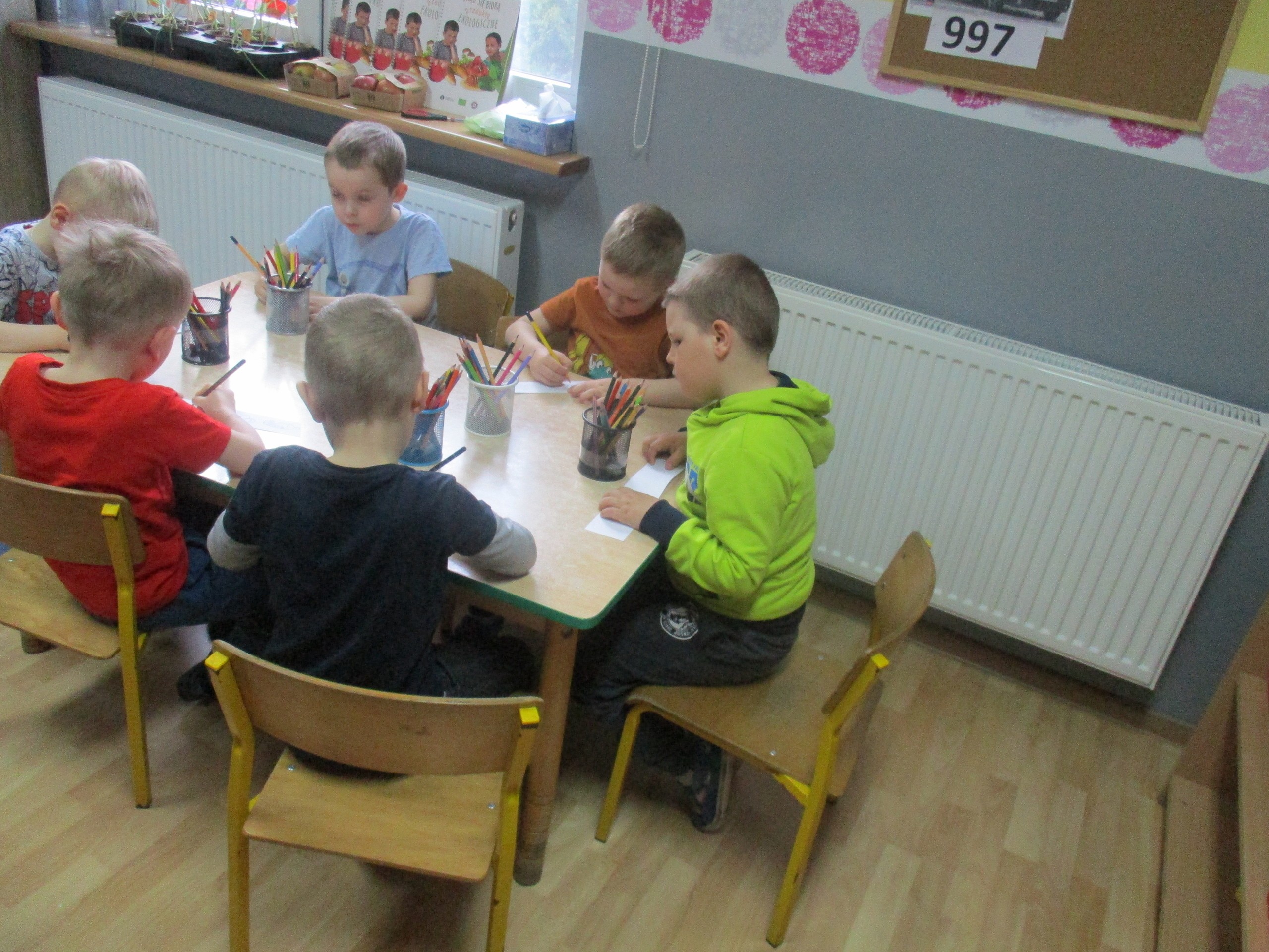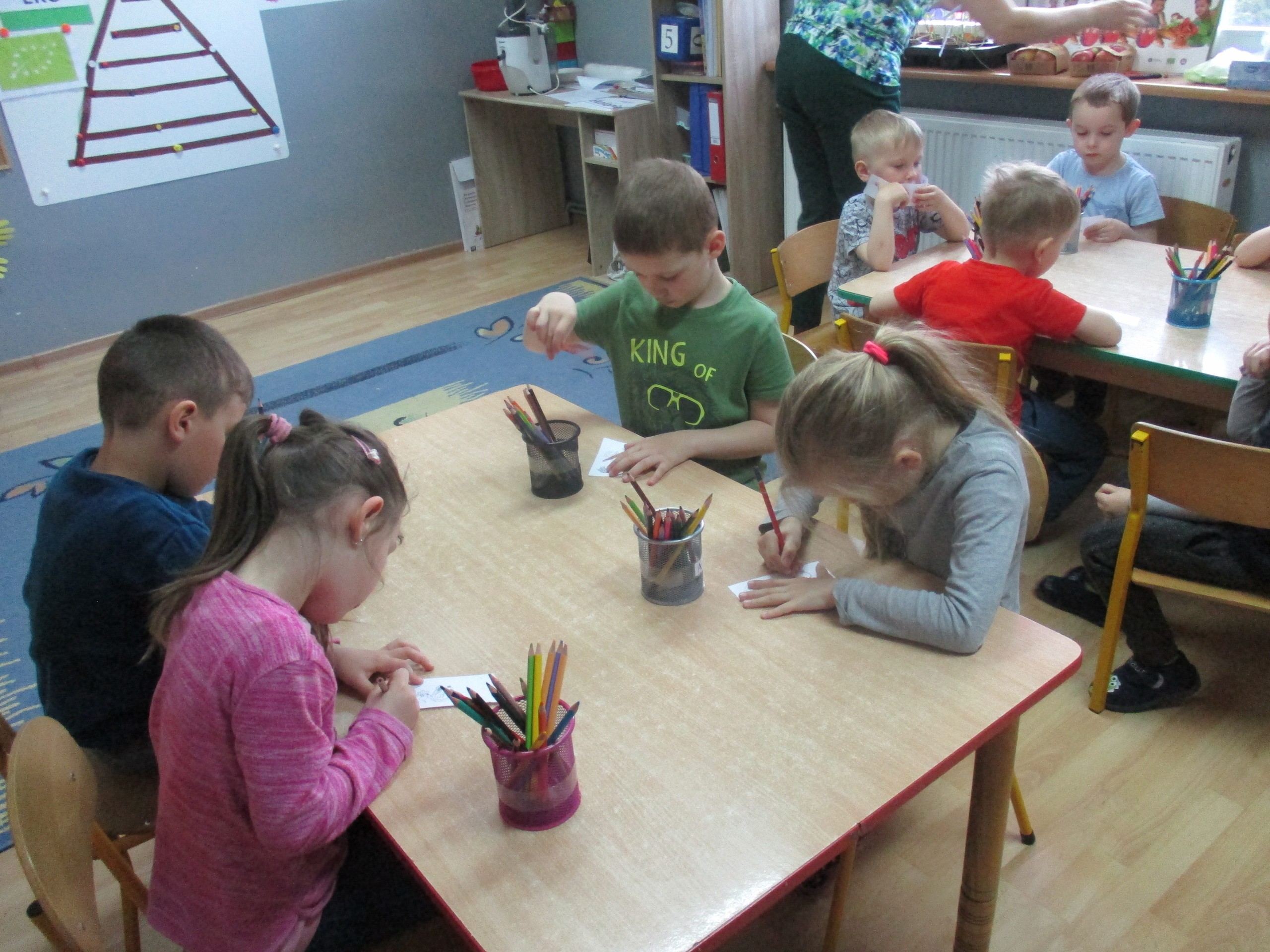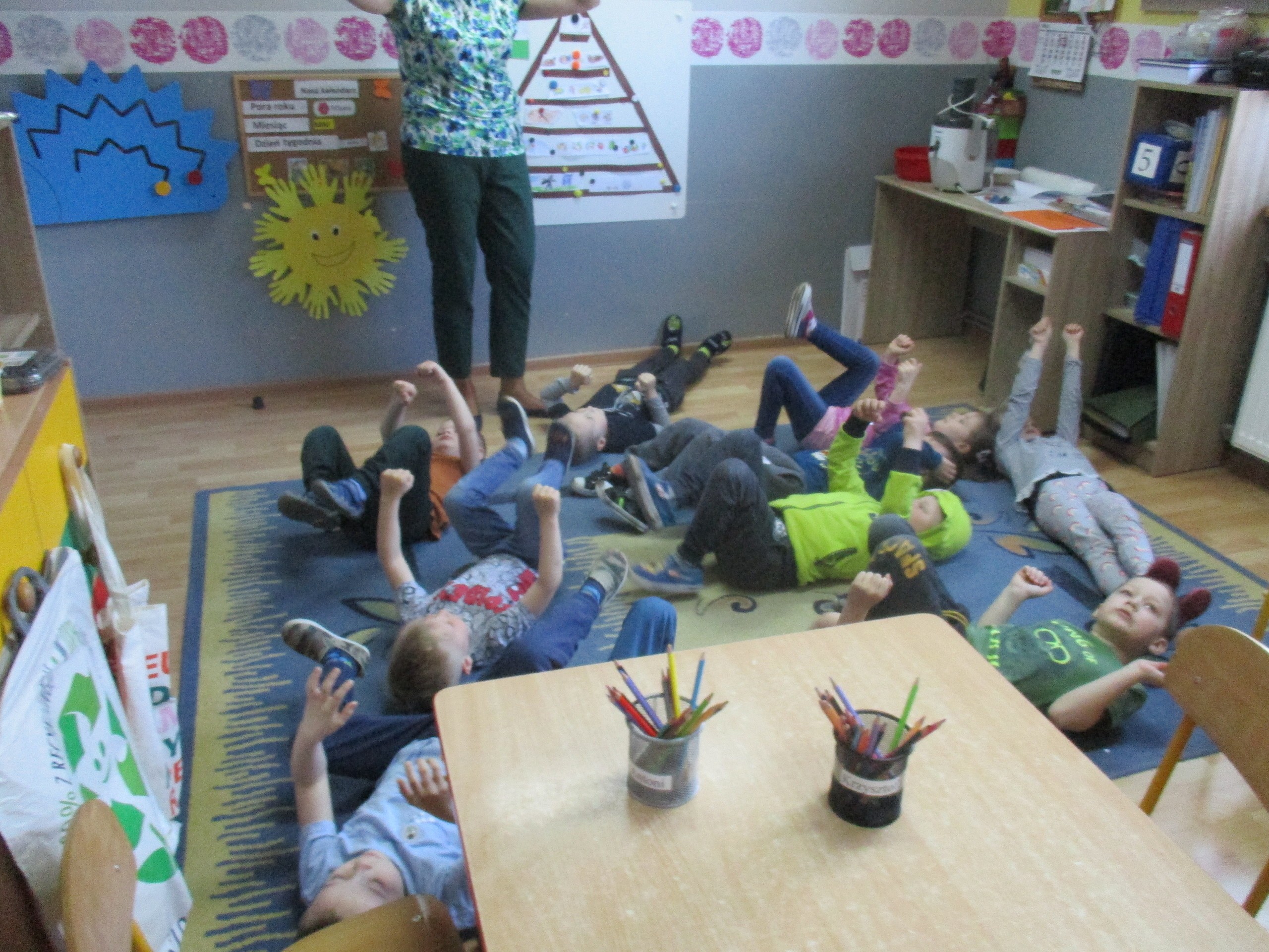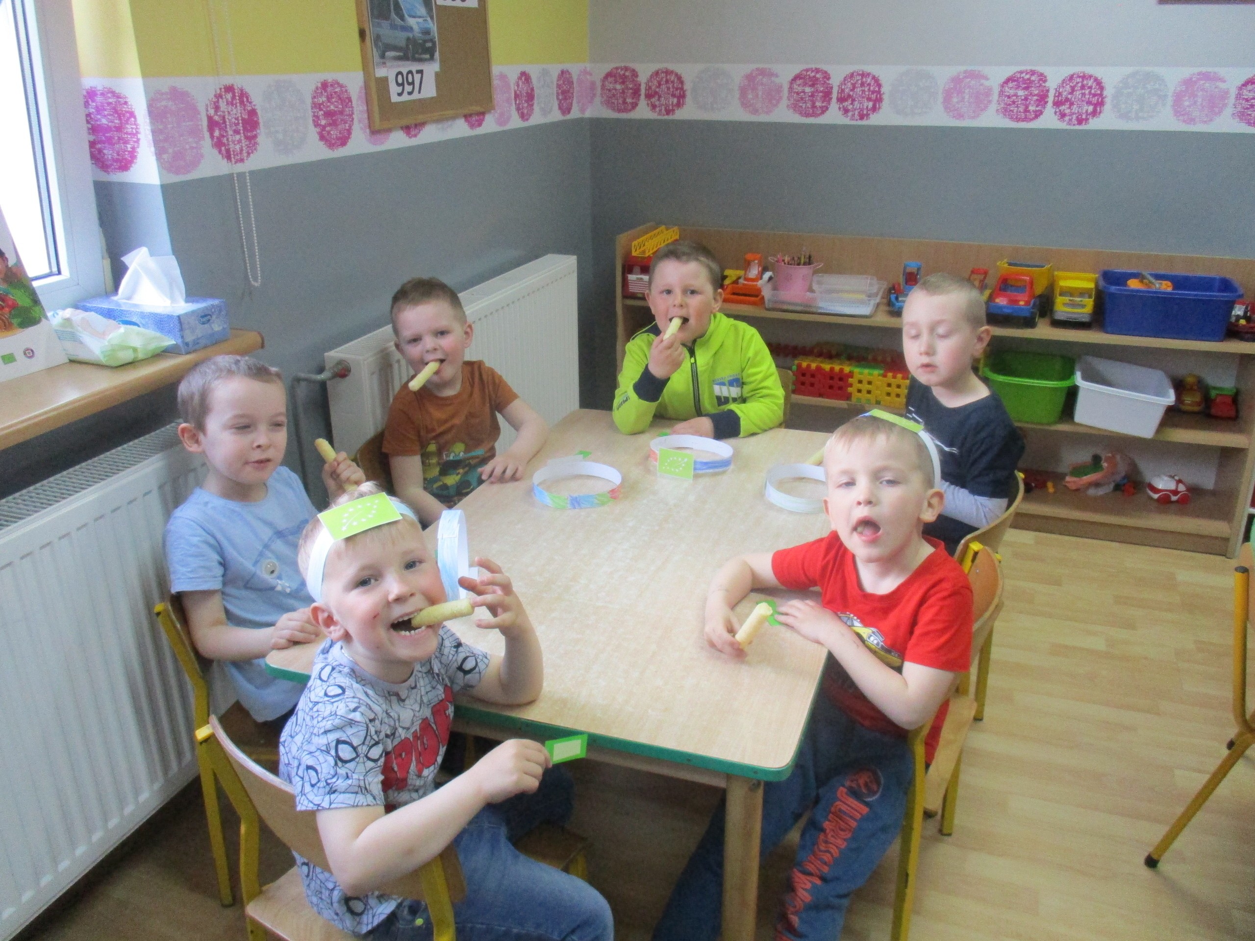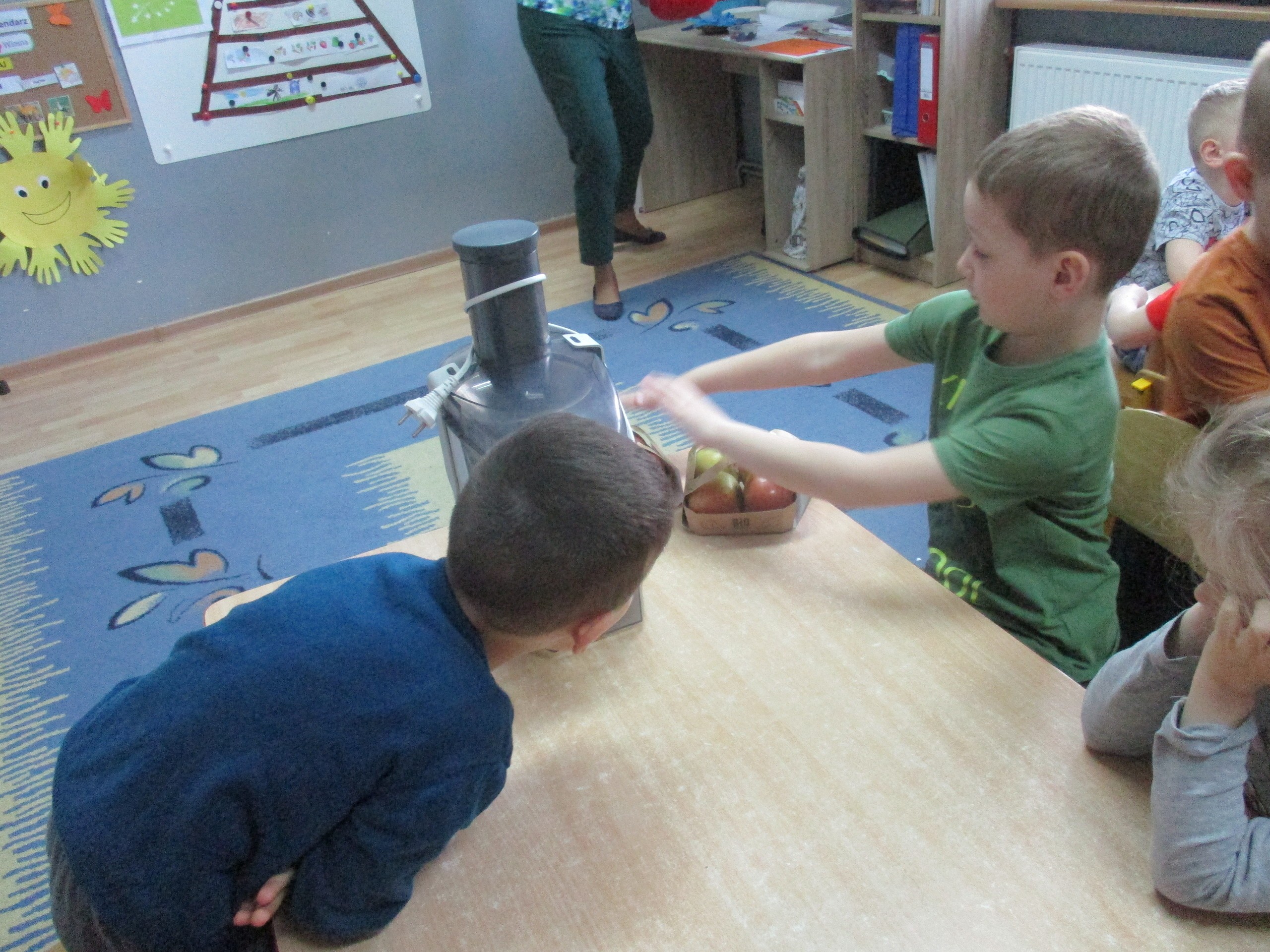 Podczas zajęć dzieci poznały wiele produktów ekologicznych oraz znaczek EKO jaki znajduje się na opakowaniu tych produktów. Obejrzały film pt. “Skąd się biorą produkty ekologiczne?”, uważnie śledząc proces ich powstania. Wspólnie utworzyły Piramidę Zdrowego Żywienia i Stylu Życia oraz realizowały jej zawartość. Spróbowały niektóre produkty ekologiczne np.; chipsy, flipsy, maliny, borówki, marchewkę a także pijąc sok ze świeżo wyciśniętych jabłek.
