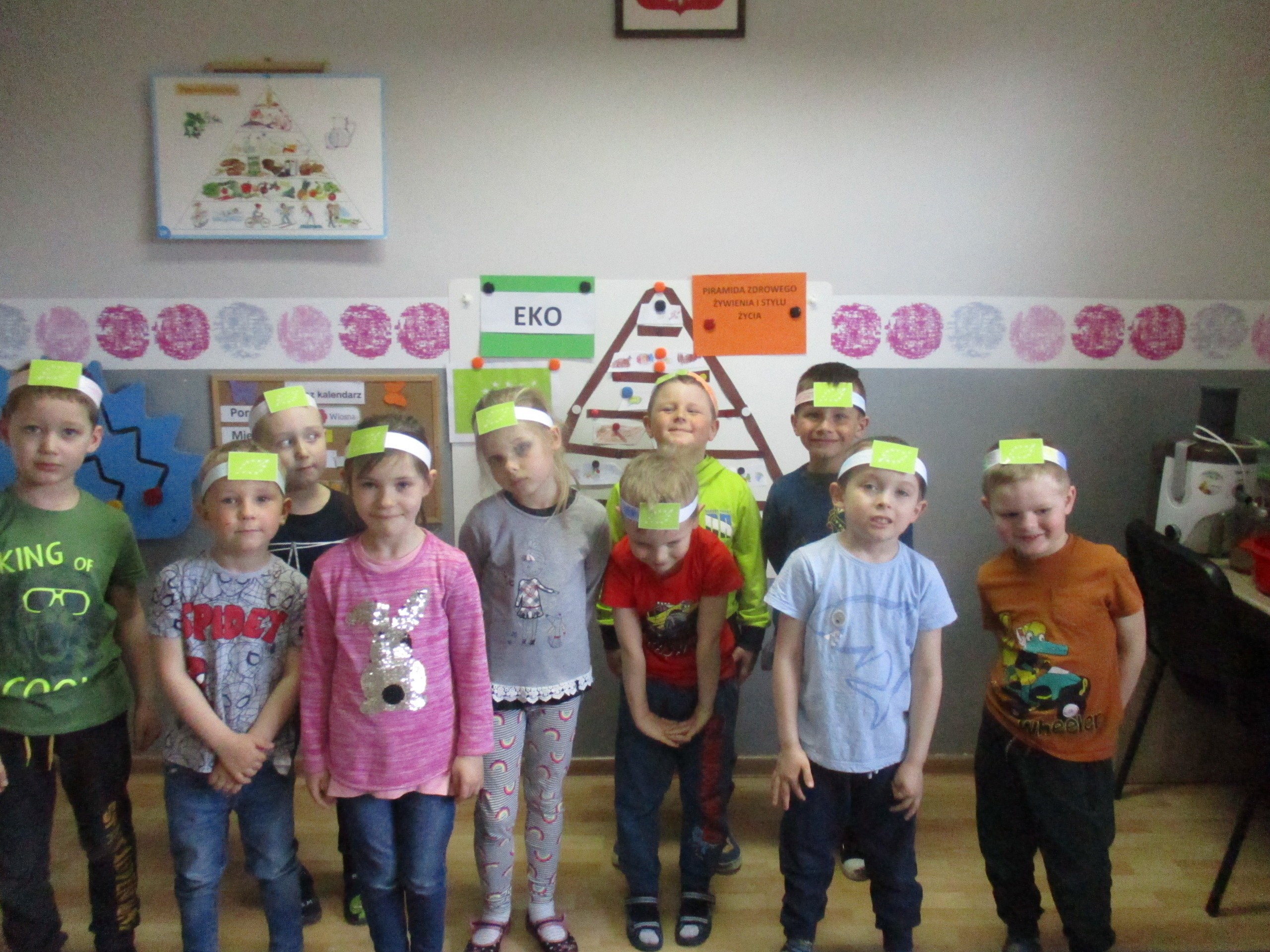 Na zakończenie zajęć wykonały opaski ze znaczkiem EKO oraz nadały sobie EKO imiona.